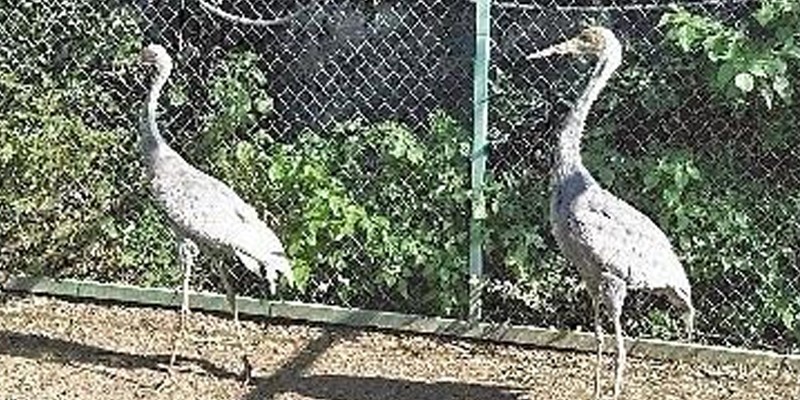 两只白枕鹤在缓冲区进行隔离观察。